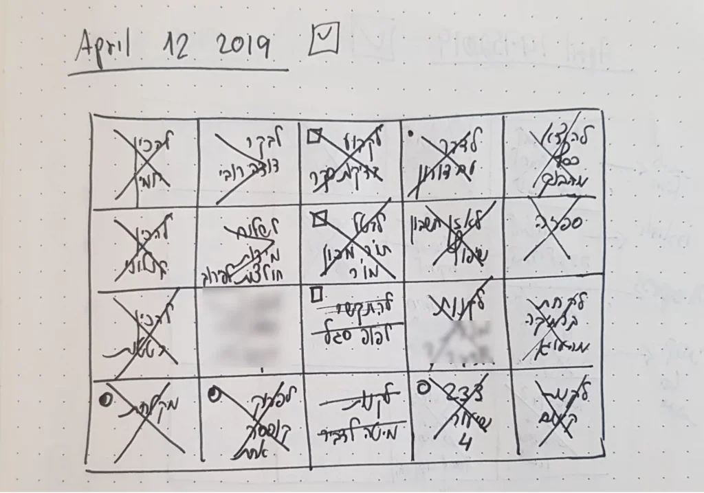 3. אני מתחילה בעשייה, ומוחקת ב X חגיגי כל משבצת שהושלמה